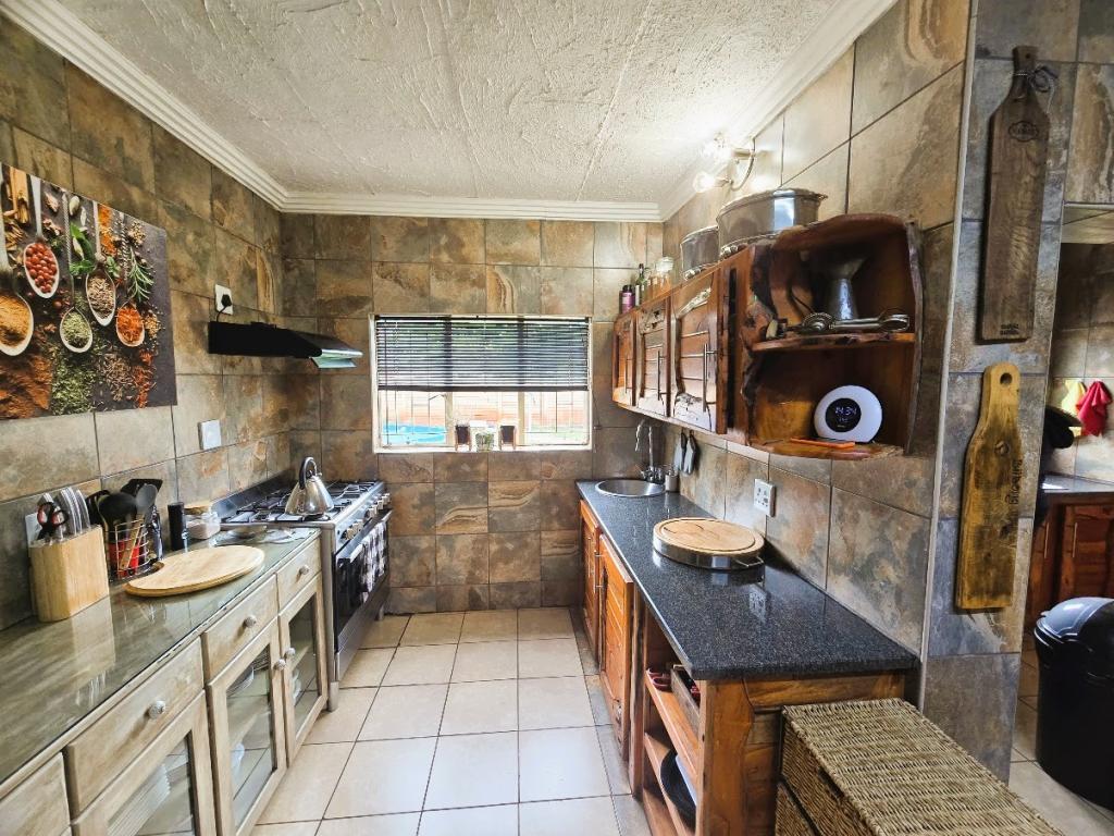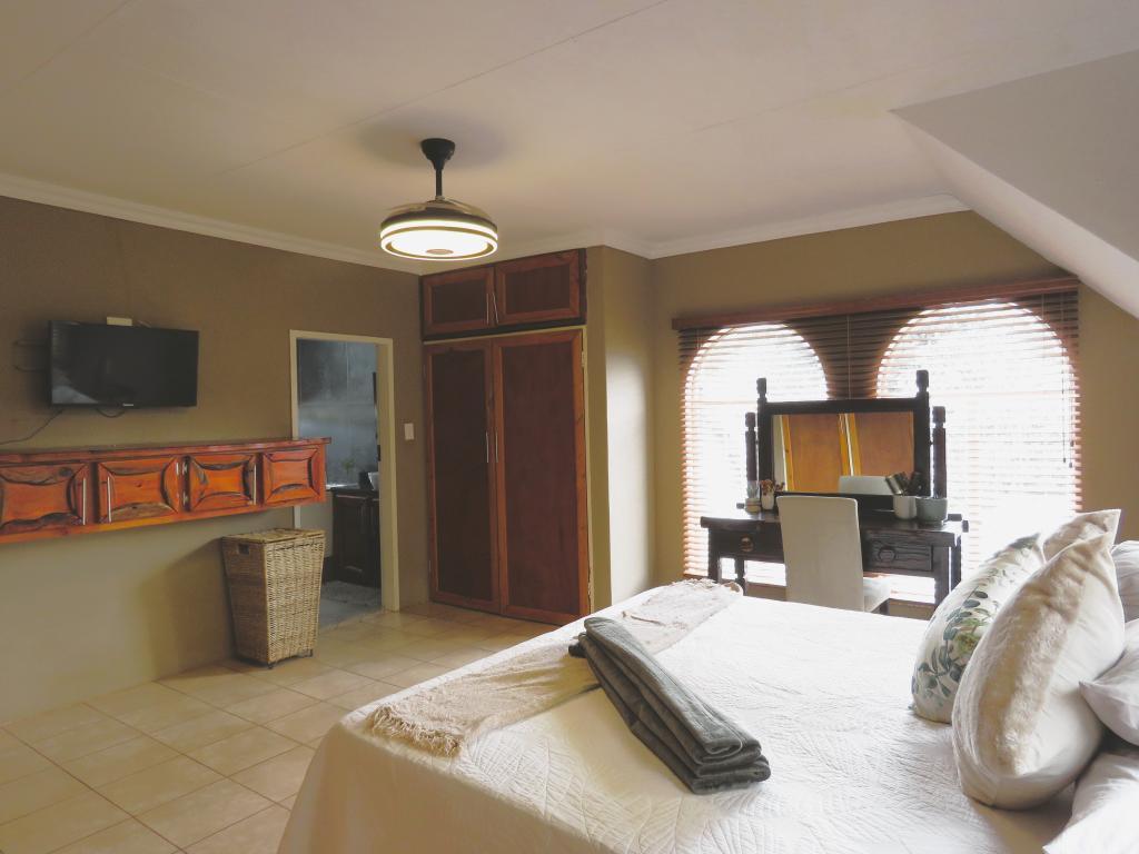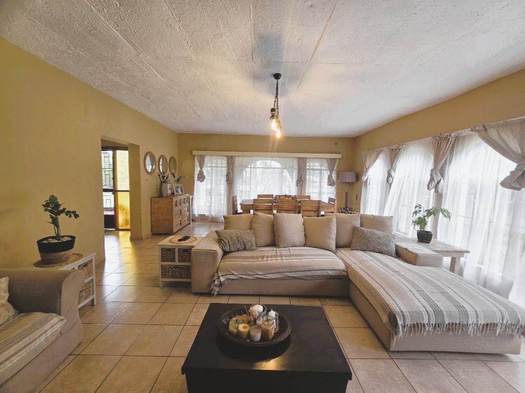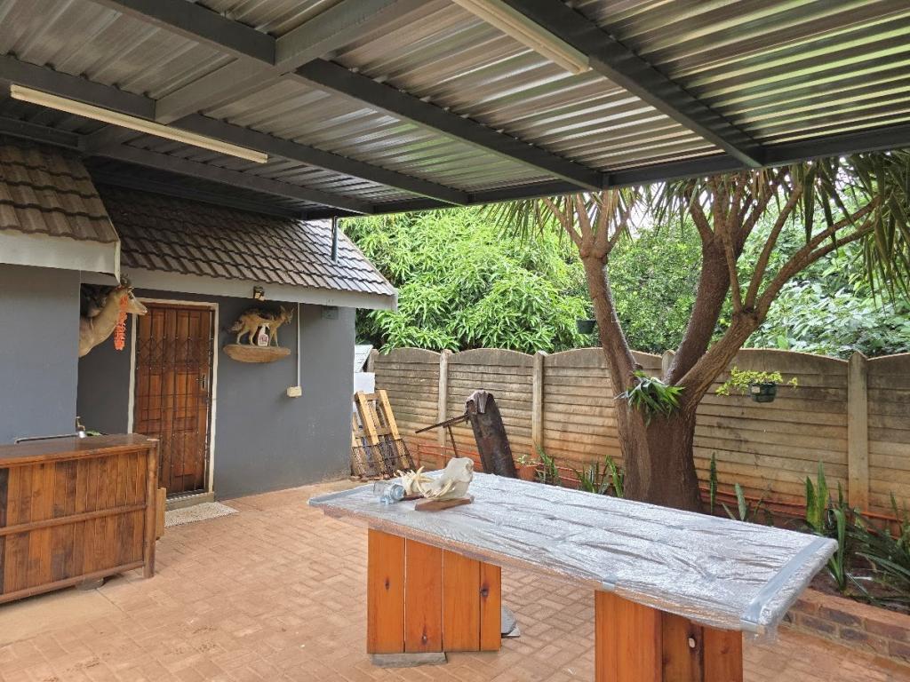 | Description: | Enjoy the spacious rooms, and even more spacious erf with tennis court and lovely garden. OUTSIDE FEATURES: Perimeter walls and palisade. Automated gate Low maintenance well established garden with beautiful fish pond & water feature Double garage and storeroom Entertainment room with build-in braai,basin and guest toilet Laundry Covered patio and braai area Garden flat with bedroom & bathroom, air conditioner, roof fan and build-in cupboards Outside zink Water tank with pressure pump (Bore hole not currently equipped) Tennis court